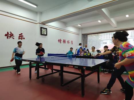 教职工的精神风貌。尤其是在团体冠亚军决赛中,当进行到第四场女双比赛大比分2:2时,女双队员李爱军和原燕萍两位老师在第五局(决胜局)开局不利的情况下,顶住心理压力,克服重重困难,最终以12:10赢得了关键一局,成为冠亚军比赛中最精彩的一笔。