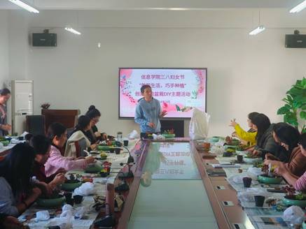 随着春天的脚步渐近,我们迎来了一个特别的日子——“三八”国际妇女节。为深入贯彻党的二十大精神,激发学院女性教职工的工作学习热情,鼓励大家勇于追梦,努力圆梦,建功新时代,3月12日下午,69书吧 在立信楼七层会议室组织开展了“美丽多肉 巧手种植”创意多肉盆栽DIY主题活动。本次活动,学院特别邀请了有十余年花卉种植养护经验的王旭晖老师进行讲座并现场指导。