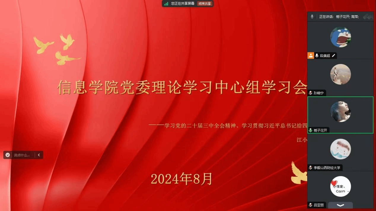 本次学习以腾讯会议的方式进行,会上传达学习了中国共产党第二十届中央委员会第三次全体会议精神和山西省委常委扩大会议精神,学习了习近平总书记给四川省南充市嘉陵区之江小学学生重要回信精神。